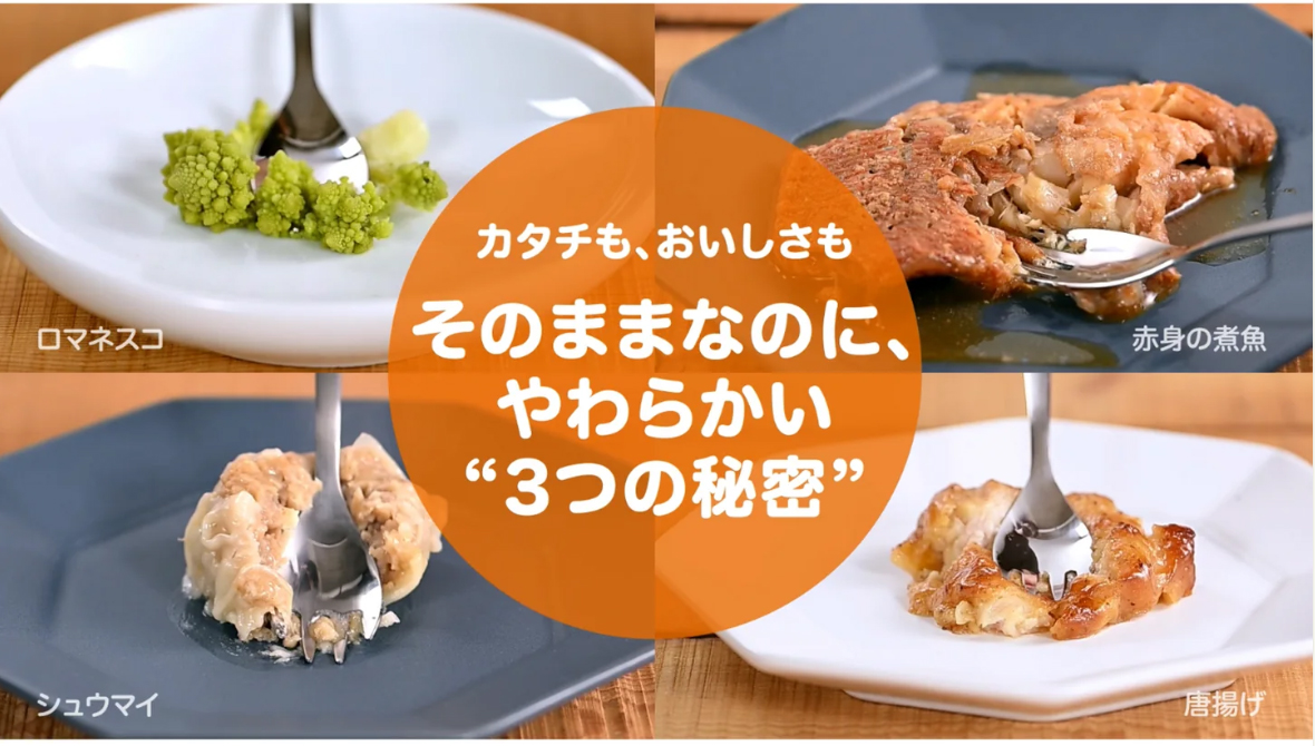 ■肉などのたんぱく質は、時間が経つと「冷える・乾く」等の理由で固くなり食べづらくなります。